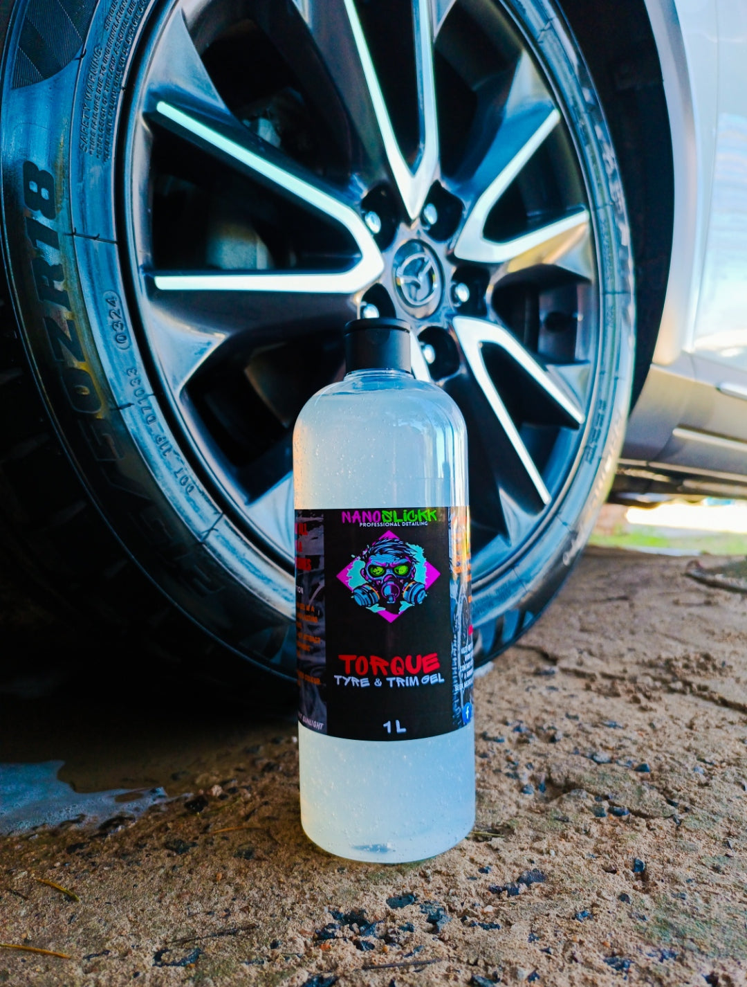 Torque Tyre Gel is a specialized product designed to enhance and protect vehicle tyres, delivering a polished, deep black finish. Torque Tyre Gel is thick, it’s applied to clean, dry tyre sidewalls using a foam or microfiber applicator for even coverage. Formulated with silicone polymers, penetrates rubber to restore a rich, glossy shine, preventing cracking, browning, and UV damage. Torque Tyre Gel is long lasting, hydrophobic and non sling. It is safe for plastic and vinyl trim, offering versatility.